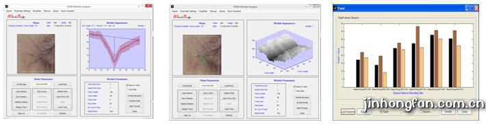 6. 皺紋分析軟件包:該軟件包可以追蹤皺紋,顯示皺紋輪廓,可以用來(lái)比較使用除皺化妝品或治療前后皺紋的變化。
